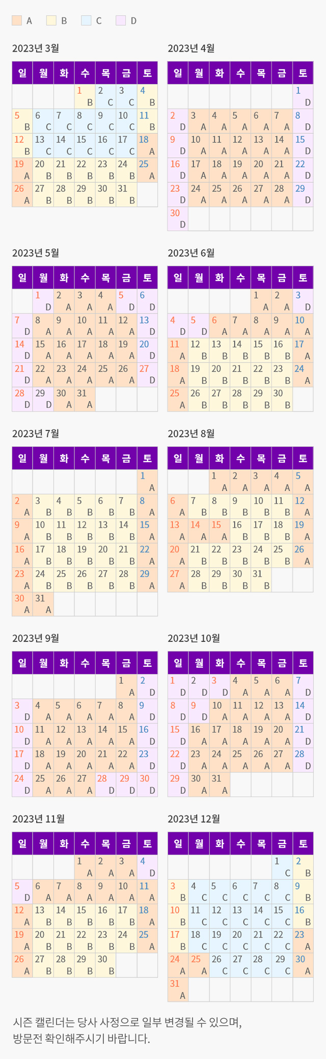 입장 제한일이 있는 권종은, 입장 제한일에 방문할 경우 매표소에서 정기권과 신분증을 제시하시고